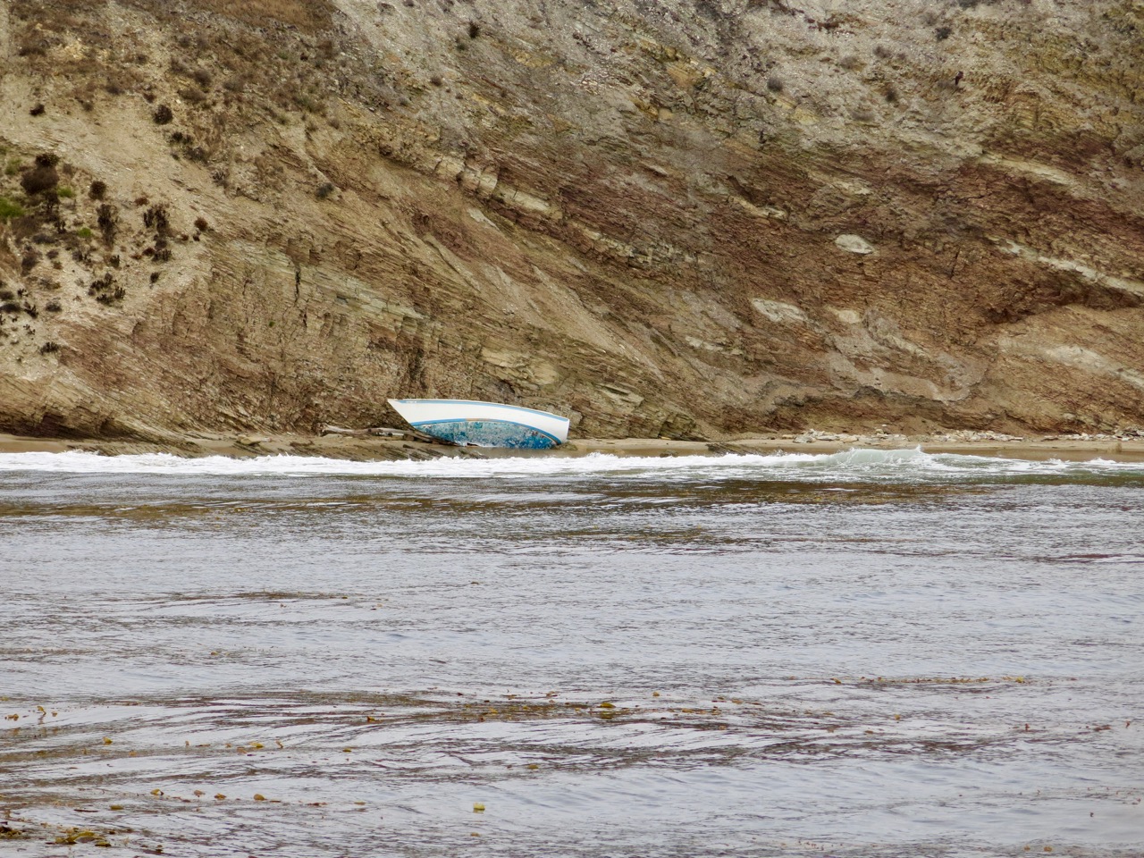 We anchored in about 25 feet of water, sand bottom. There are areas with substantial kelp beds on the approach, but on this adventure there were none in our way.
