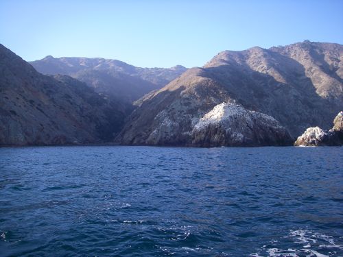 Coming from the east, aim at Diablo Point and look for two islets 70 and 80 ft. high. They’re usually white and easy to pick out at a distance. They mark the NW entrance.